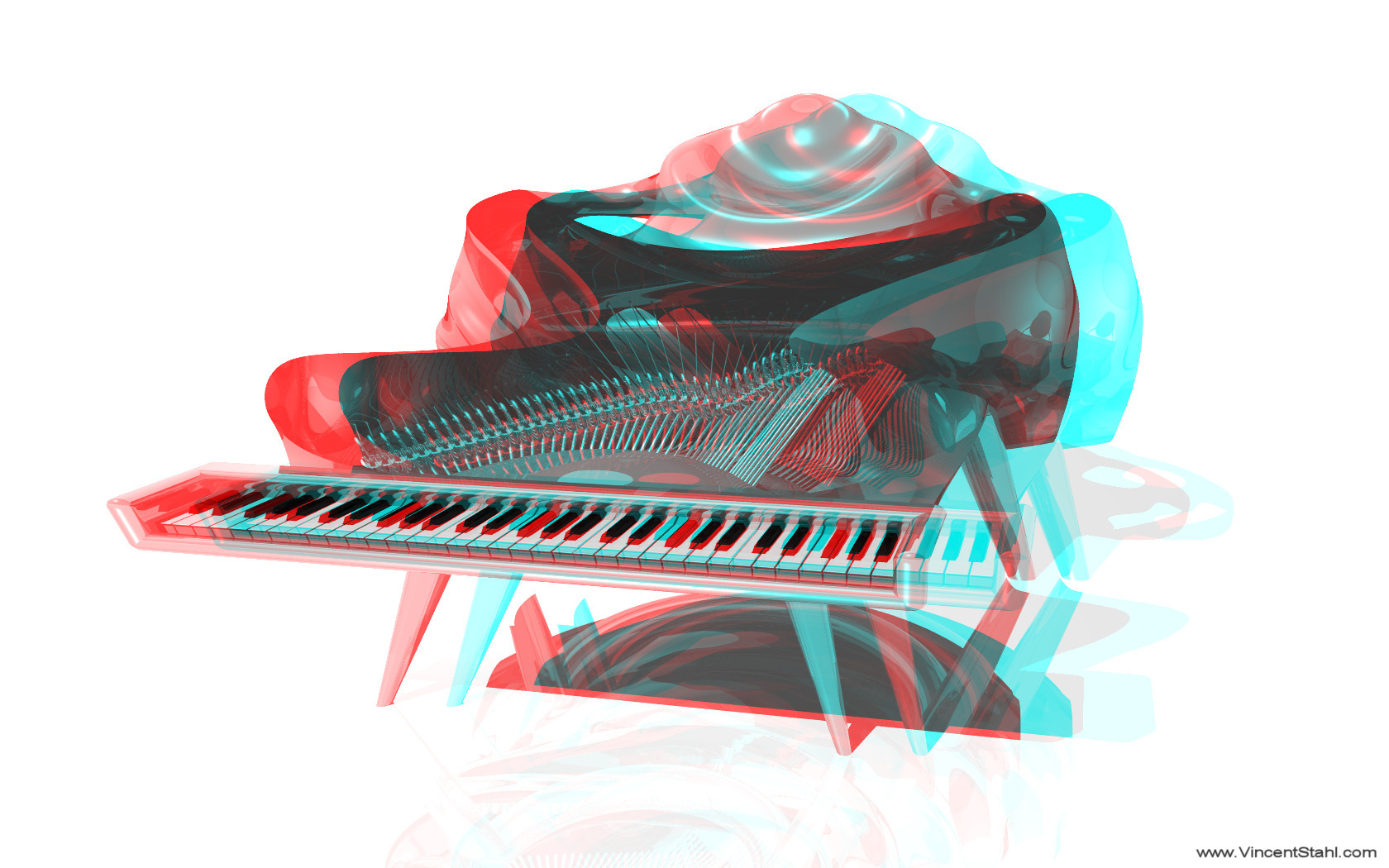 #20-01: Manta Piano. 3D stereo anaglyph image, red/cyan mono at 1024x768.