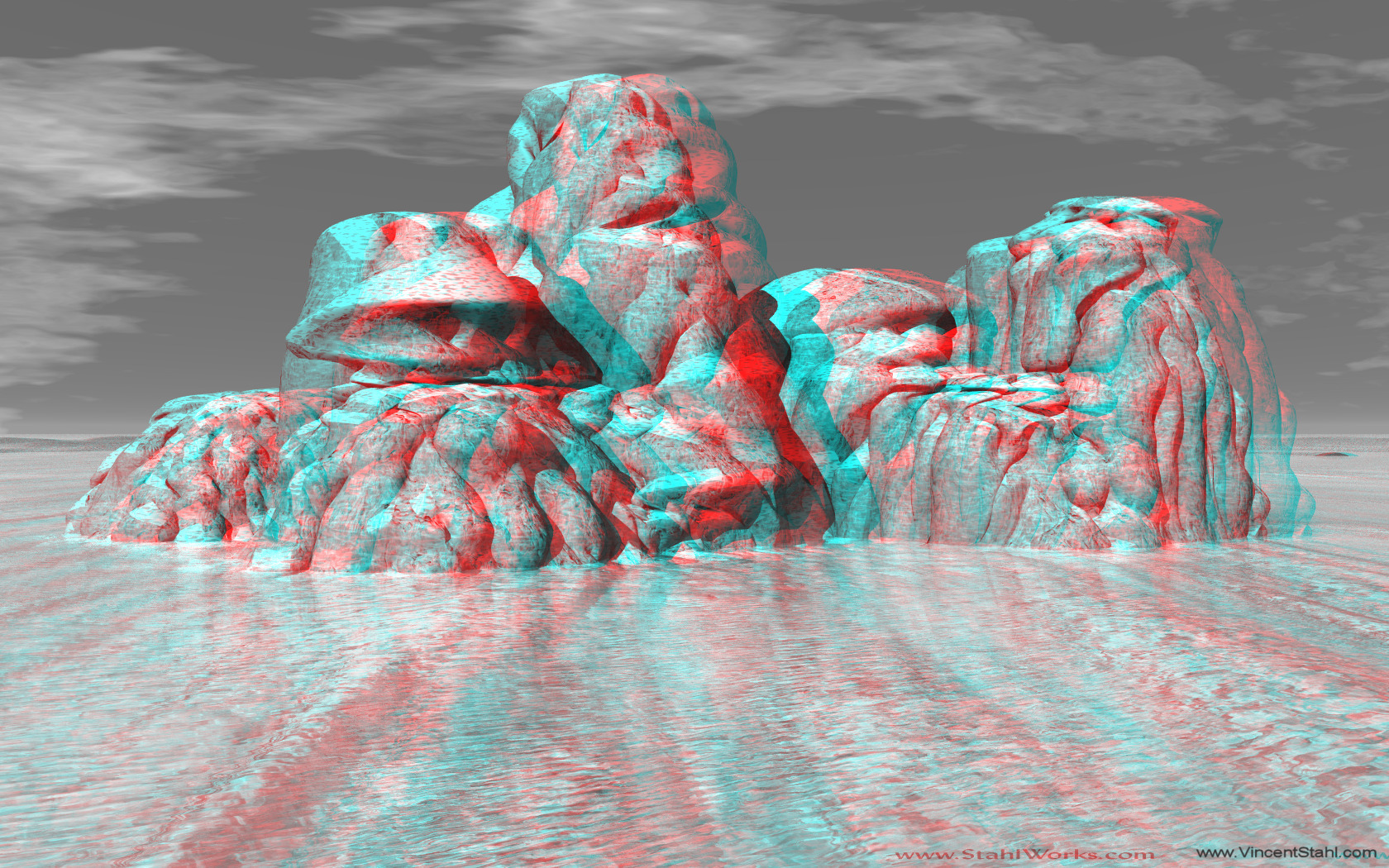 3D stereo anaglyph image, red/cyan mono at 1024x768.