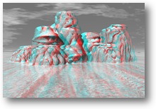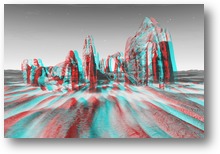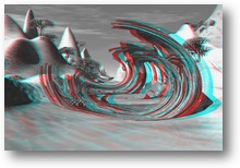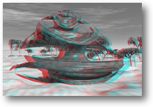 SciFi landscapes with Fractal sculptures, rendered as native 3D stereo images in 1680x1050 pixel resolution. Provided as Red/Cyan monochrome images.