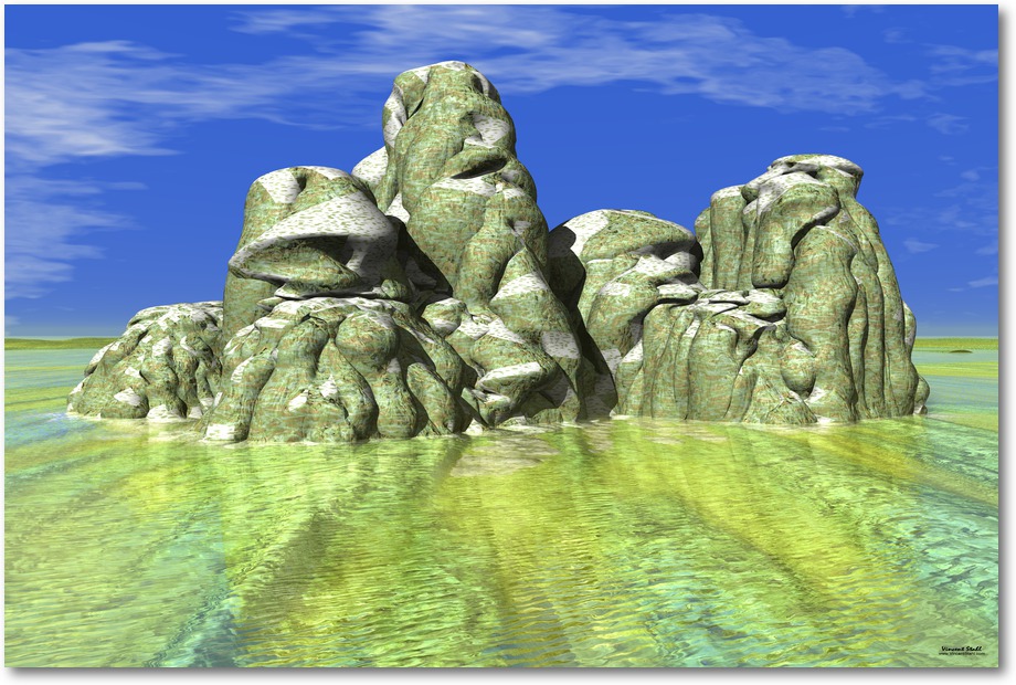 Potato shaped rocks in a shallow lake, random formations of erosion.