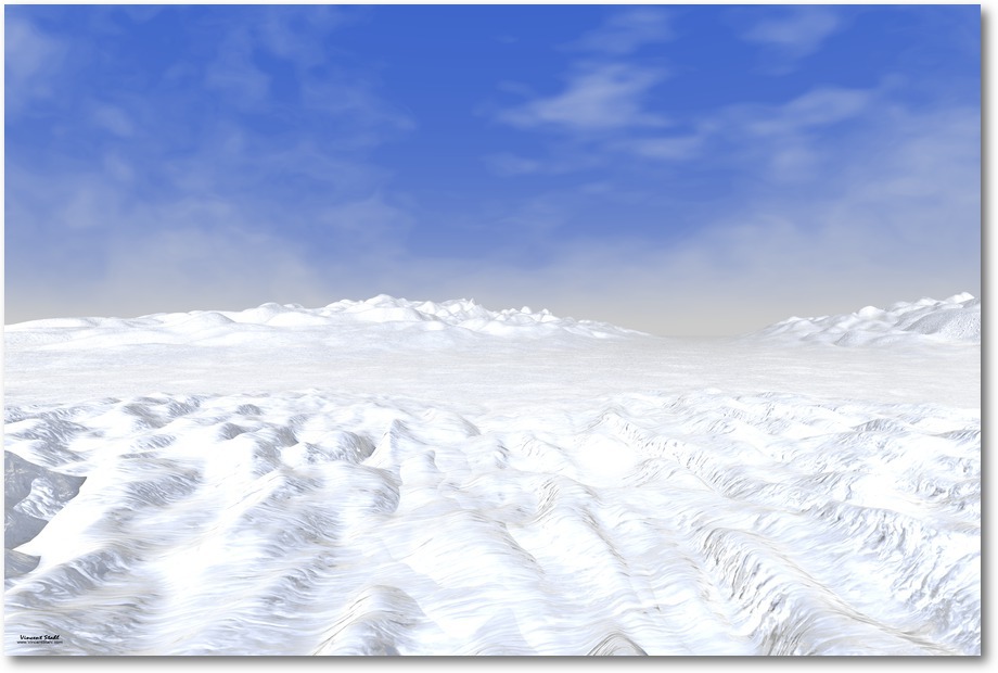 Pure white snow field with shallow hills and slightly foggy atmosphere. Silent meditative mood, a pure background scenery.